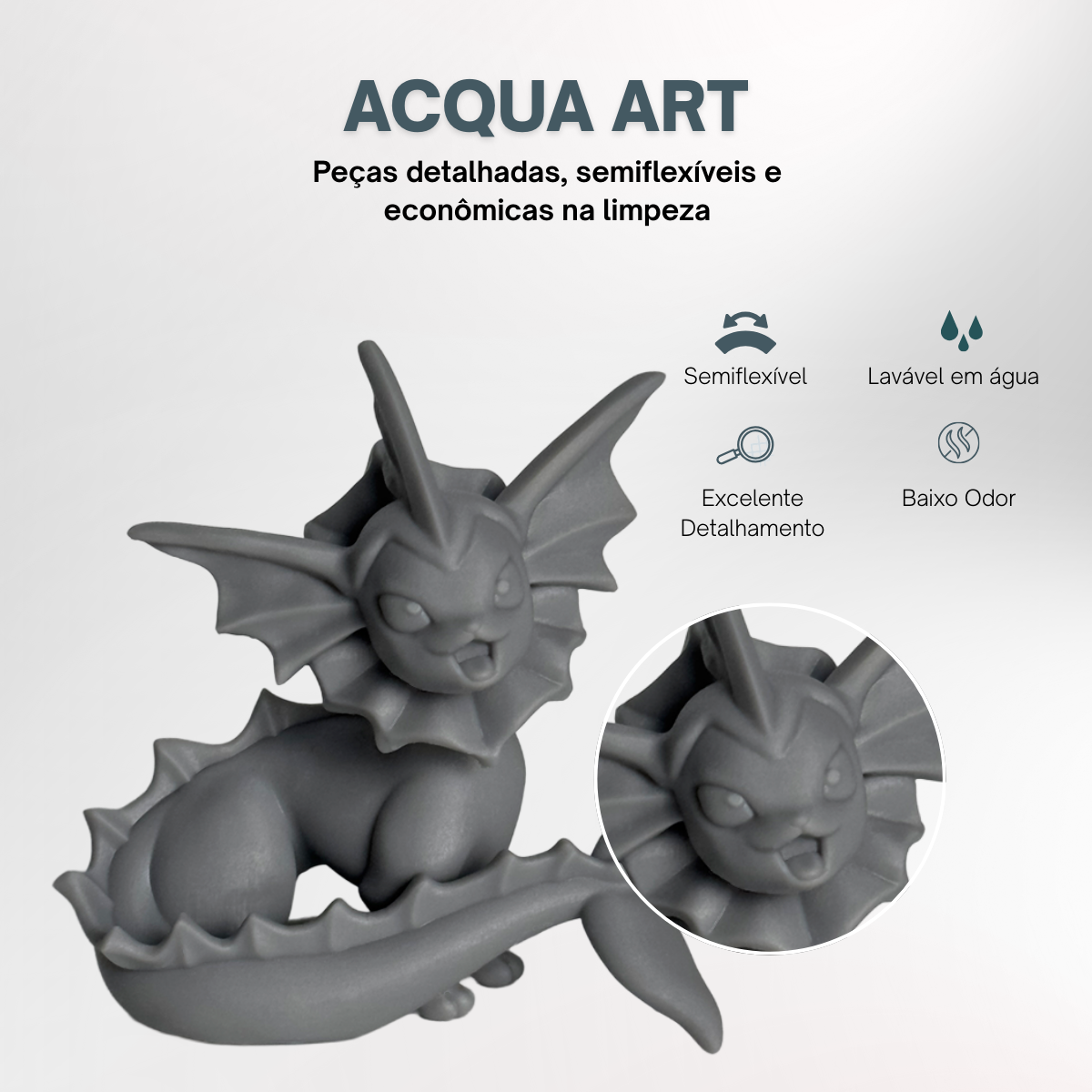 Resinas de característica semiflexível, com baixo odor e excelente detalhamento superficial. Indicada para prototipagem em geral, impressão de peças decorativas e action figures.