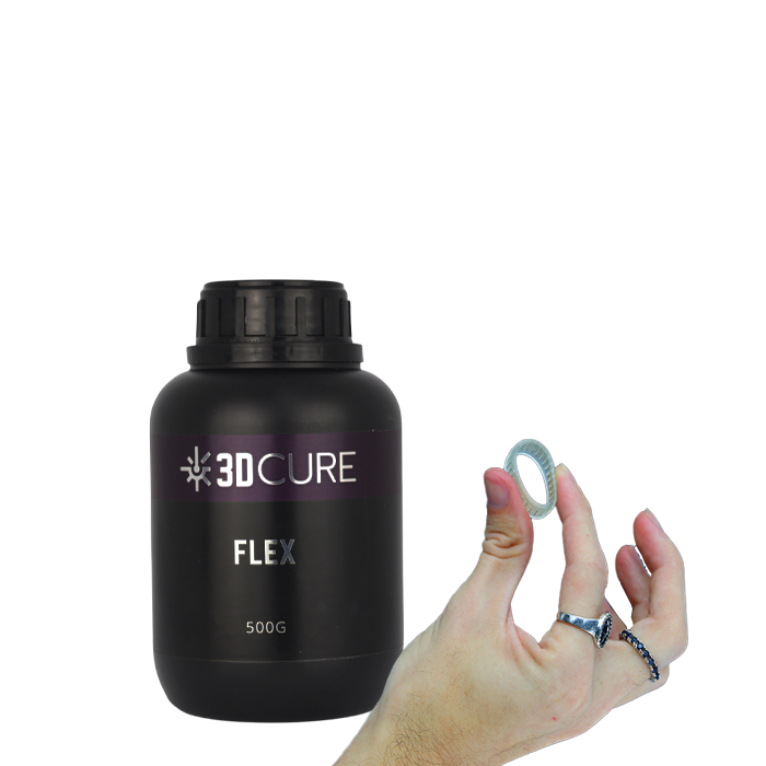 A Resina Flexível 3D Cure Flex é compatível com impressoras 3D do tipo LCD e DLP com fonte de luz UV de 405nm. As resinas da linha Flex devem ser utilizadas apenas em aplicações externas, pois não são biocompatíveis.