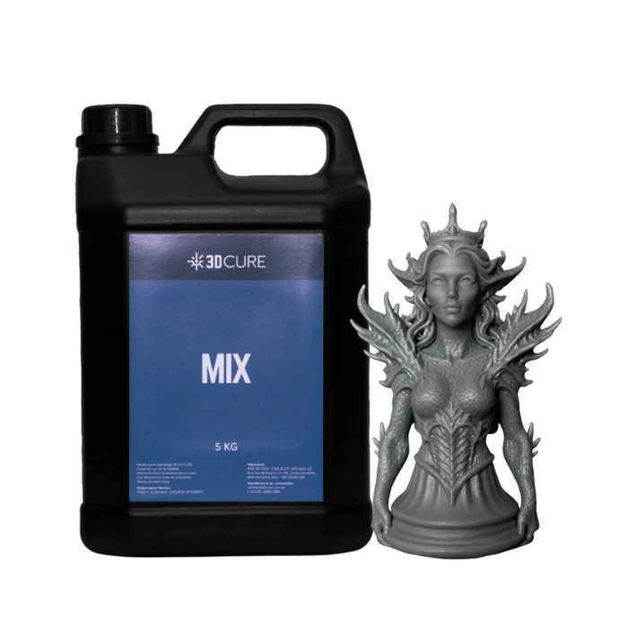 Mix é uma mistura de resinas obtida da transição de lotes, durante o processo de envase. A cada troca de resina nas envasadoras, retira-se toda a resina dos equipamentos para evitar a contaminação entre lotes. Esta resina é separada, filtrada e re-pigmentada gerando a Resina Mix. Por não ter um padrão estabelecido, os parâmetros de impressão e as características mecânicas da linha Mix podem sofrer variação com o lote. Porém, todos os lotes passam pelos mesmos testes de controle de qualidade das demais resinas, a fim de garantir que ela seja perfeitamente compatível com sua impressora 3D.