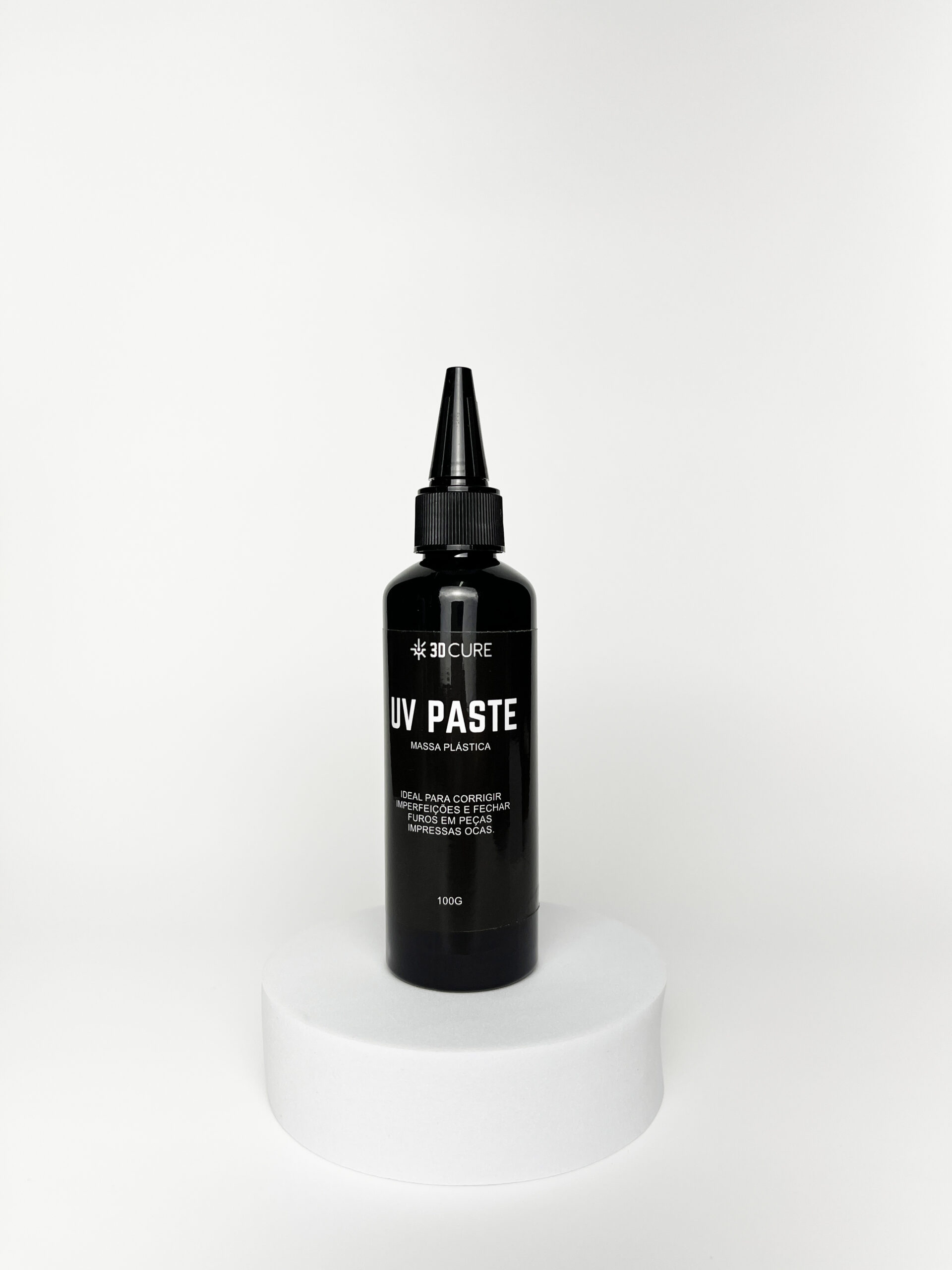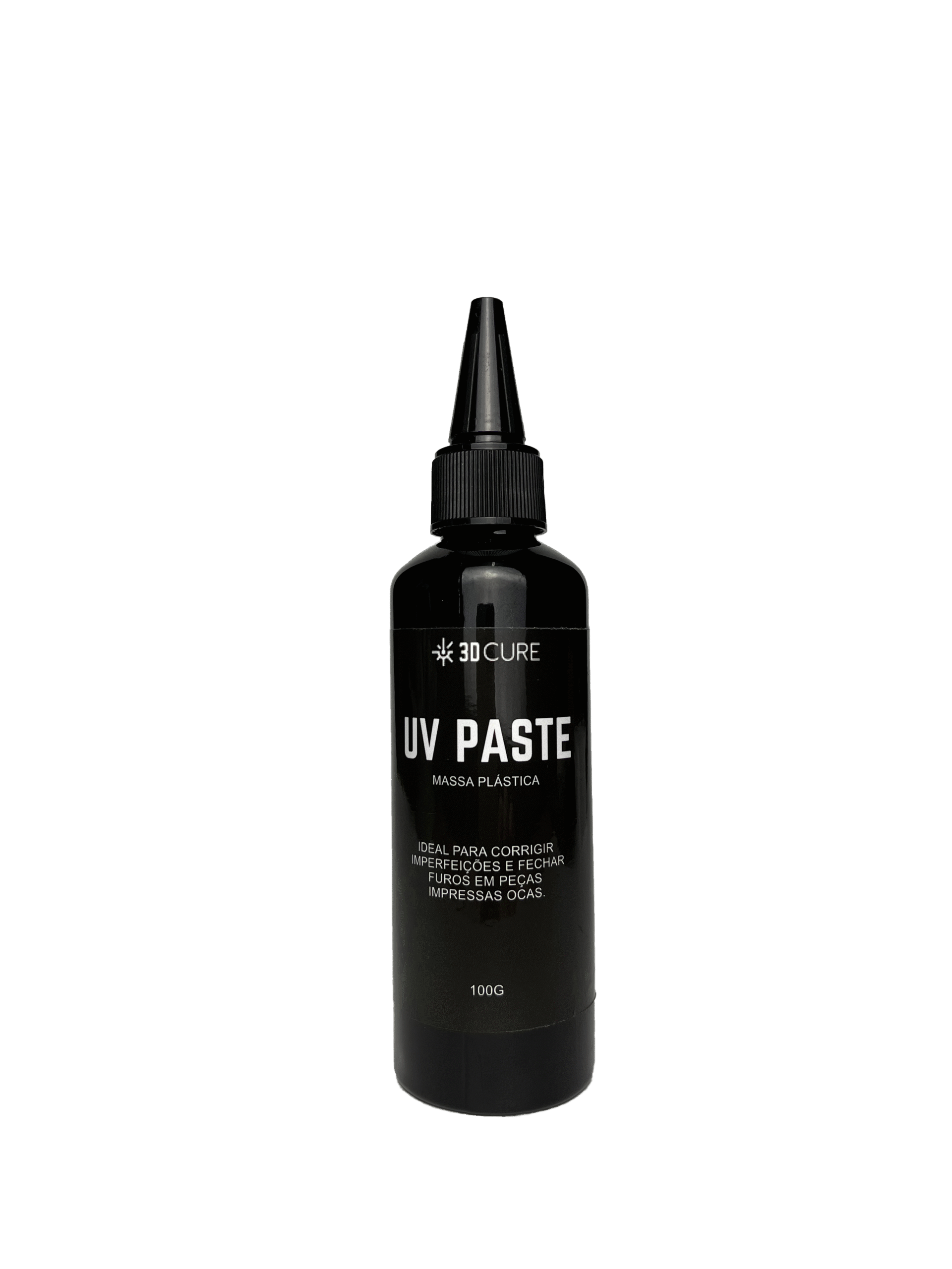A massa plástica fotopolimerizável UV Paste da 3D Cure é um material de reparo versátil criado para quem trabalha com impressão 3D. Vendida em bisnagas de 100 g, ela garante aplicação simples, alta precisão e cura instantânea ao entrar em contato com a luz ultravioleta.