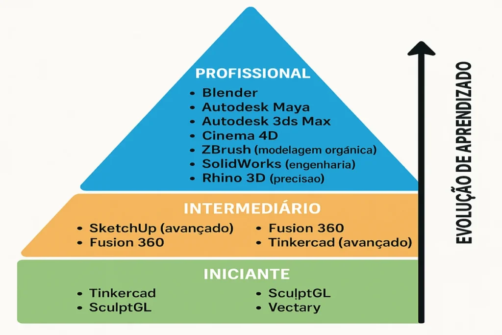 Chegar ao nível intermediário significa que você já tem familiaridade com a interface dos softwares, entende conceitos como malhas, texturização e talvez até tenha feito seus primeiros projetos. Agora, é hora de buscar programas que ofereçam mais controle, personalização e liberdade criativa.